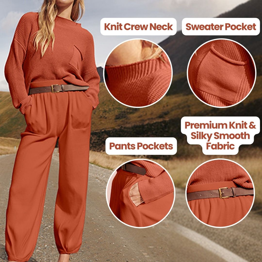 Premium Fabric: Melt into the coziness of a knit sweater, and relish in the silky smooth kiss of the light, drapey pants.