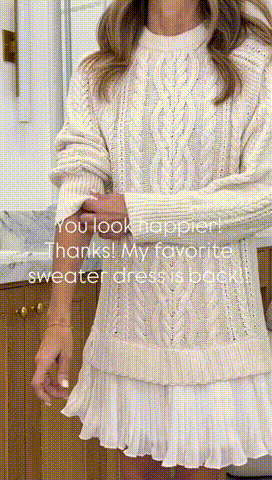 This chunky knit sweater mini dress features a cable-knit sweater and pleated skirt. Featuring a classic crew neckline and a chunky knit, this dress offers a comfortable, sophisticated, modern silhouette—perfect for cool autumn days, holiday parties, winter get-togethers, or breezy spring afternoons!